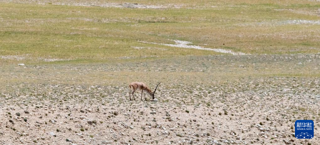 8月24日,一只公藏羚羊在雅魯藏布江源頭附近的草地上覓食。新華社記者 丁增尼達 攝