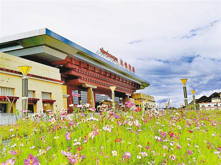夏天,日喀則站前廣場開滿鮮花。