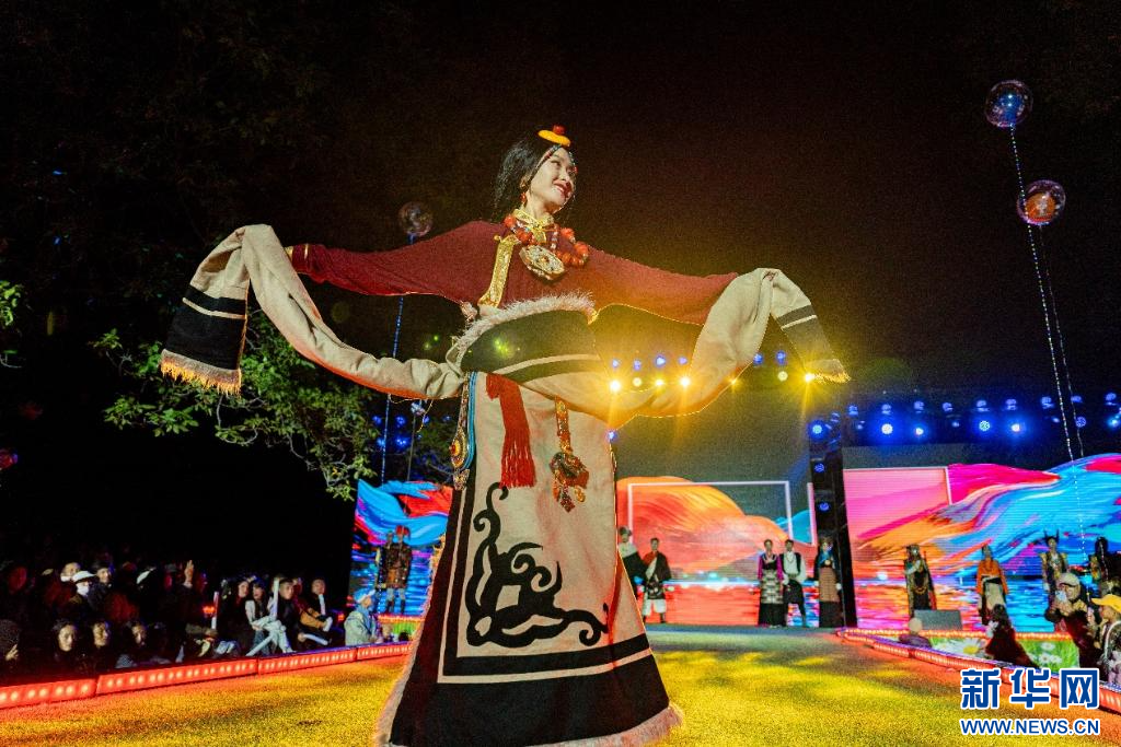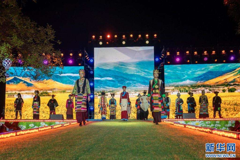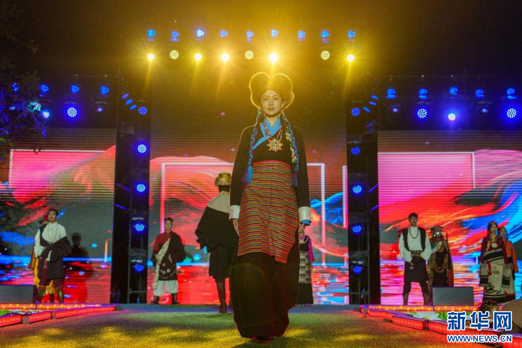 24日,西藏山南市加查縣舉辦“魅力達布·印象綻放”民族服飾秀活動。色彩斑斕的民族服飾在現場雨珠與燈光的點綴下,更顯生動與靚麗。