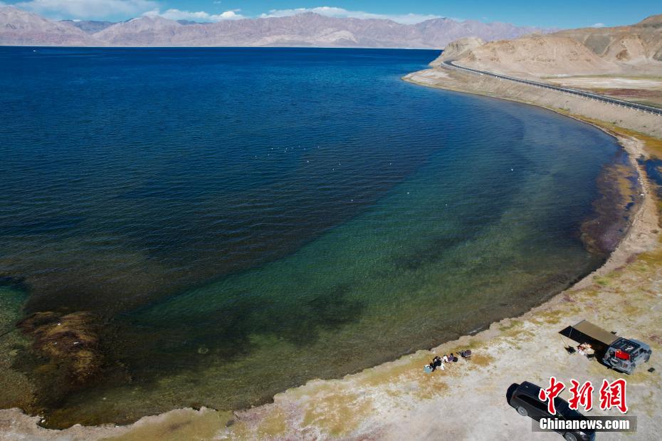 10月4日,游客在班公湖邊休閑露營(yíng)。“十一”國(guó)慶假期,不少游客來(lái)到西藏日土縣班公湖游玩。(無(wú)人機(jī)照片)中新社記者 崔楠 攝