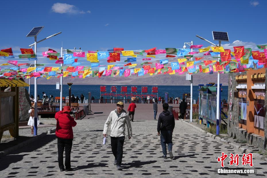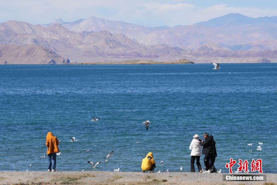 10月4日?!笆弧眹?guó)慶假期,不少游客來(lái)到西藏日土縣班公湖游玩。中新社記者 崔楠 攝