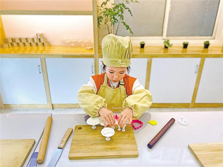 圖為小朋友自己動手制作糕點。 記者 格桑倫珠 攝