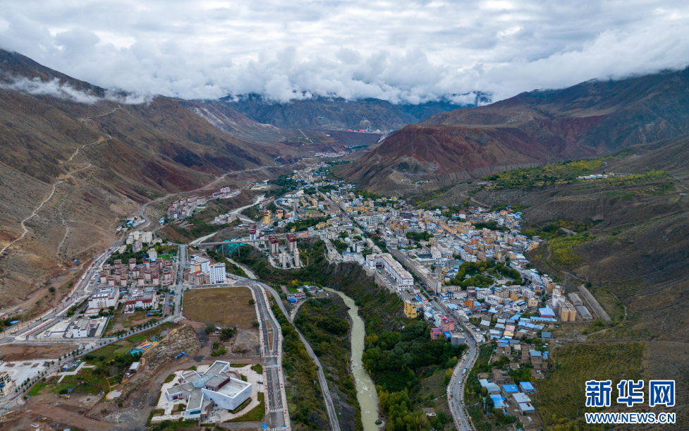 10月13日拍攝的西藏昌都市八宿縣全景(無人機照片)。新華網(wǎng) 旦增努布 攝