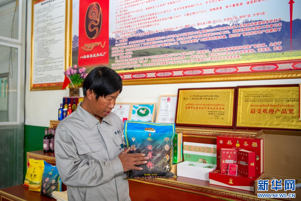 10月12日,西藏昌都市八宿縣拉魯卡蕎麥加工廠廠長赤列群培在介紹產(chǎn)品。目前,該工廠蕎麥系列產(chǎn)品有7種,年平均實現(xiàn)銷售收入400多萬元,吸納17人就業(yè)。八宿縣蕎麥種植歷史逾500年,2020年八宿蕎麥由國家農(nóng)業(yè)農(nóng)村部批準為農(nóng)產(chǎn)品地理標志。新華網(wǎng) 旦增努布 攝