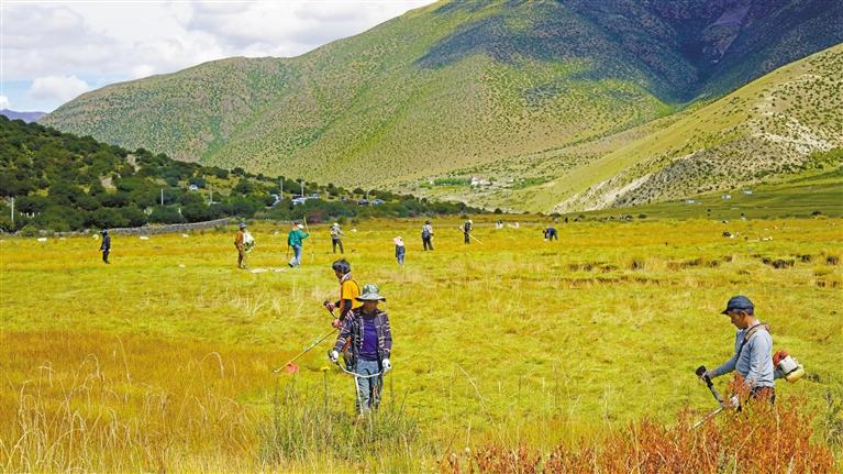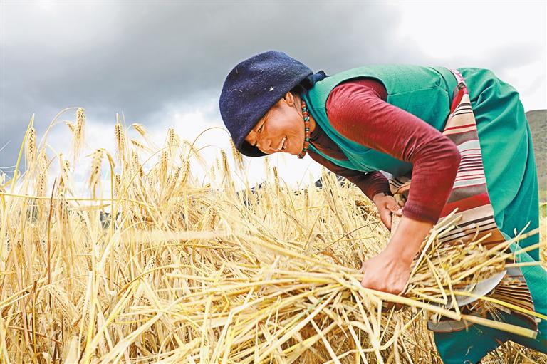 唐加鄉(xiāng)沖尼村村民收割青稞。
