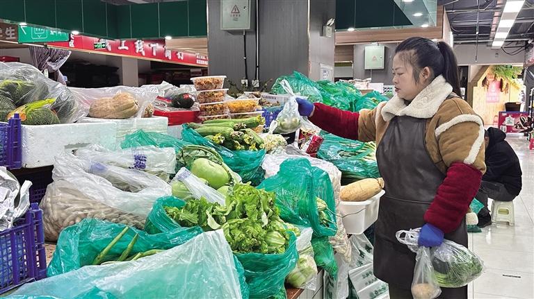 除了農(nóng)貿(mào)市場,商超售賣的蔬菜也備受市民青睞。在拉薩市城關(guān)區(qū)東郊的一家大型超市,記者看到蔬菜區(qū)人流如織,菜品十分新鮮。在價(jià)格方面,茄子每斤8.98元、嫩南瓜每斤4.98元、菠菜每斤10.98元、小白菜每斤5.98元、大白菜每斤2.58元。“冬吃蘿卜,夏吃姜。現(xiàn)在天氣冷了,買些蘿卜回家燉湯,暖胃又暖心?!币晃徽谔暨x蘿卜的阿姨說道,“超市的蔬菜種類齊全,購物環(huán)境也好,我很喜歡來這里買菜。”