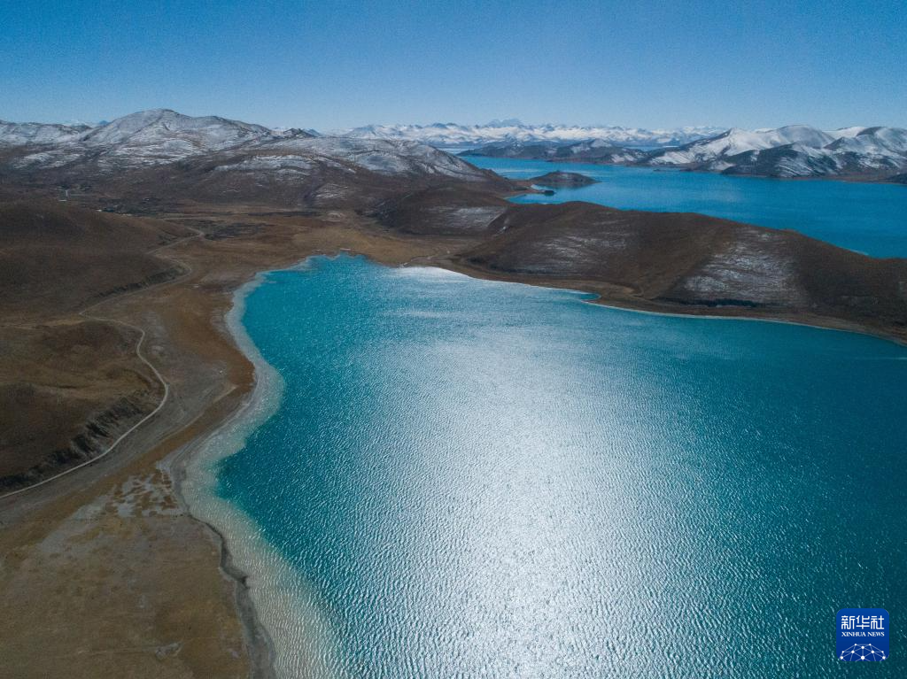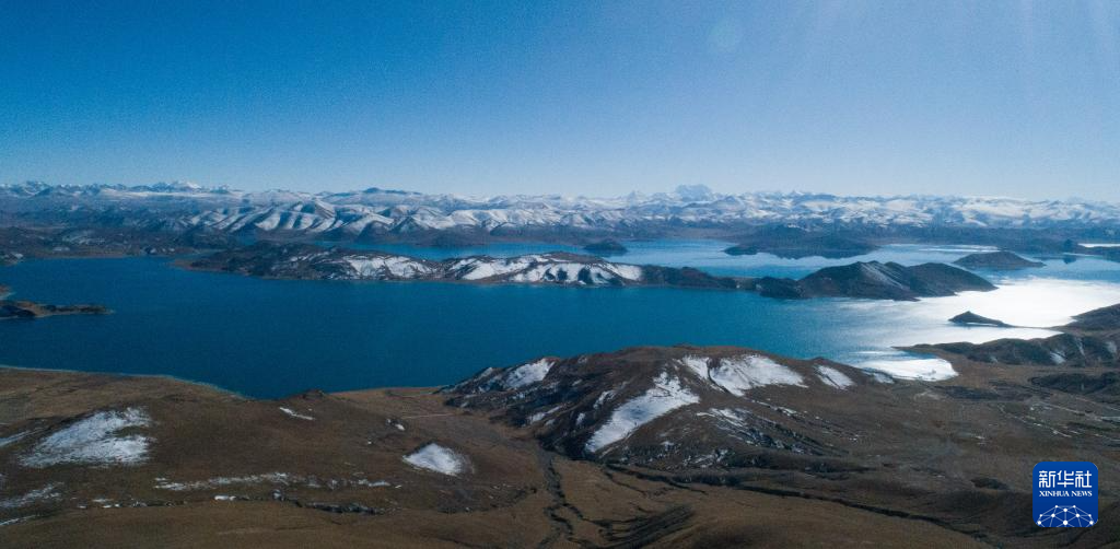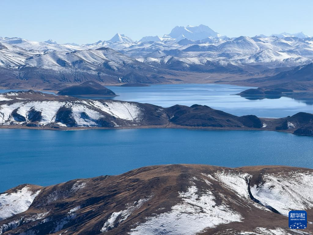 這是11月15日拍攝的羊湖及周邊雪山景色(無人機(jī)照片)。新華社記者 丁汀 攝