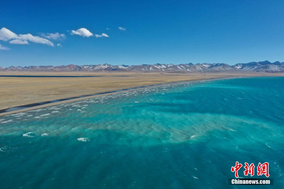 11月16日,西藏拉薩,由中國新聞社主辦的第二屆“瀾湄印象”中外媒體采風(fēng)活動團(tuán)隊來到納木錯,感受“天湖”的自然魅力。據(jù)了解,此次采風(fēng)活動有來自泰國、越南、柬埔寨等瀾湄國家的媒體代表。納木錯位于西藏自治區(qū)中部,拉薩當(dāng)雄和那曲班戈兩縣之間,是西藏第二大湖泊。初冬的納木錯碧波蕩漾,浪花卷云,不時有紅嘴海鷗掠過水面,景色迷人。圖為納木錯一角。(無人機照片)中新社記者 貢嘎來松 攝