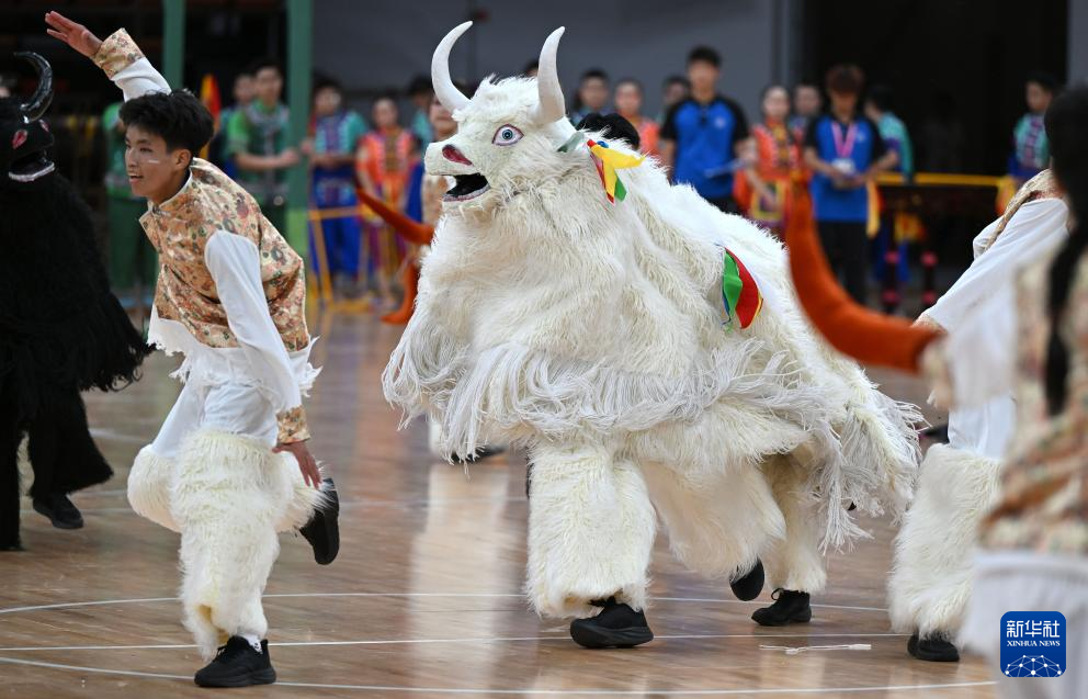 11月24日,北京隊選手表演藏地喜樂斗牦牛。新華社記者 郭程 攝