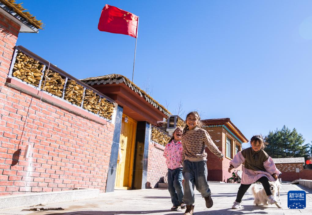12月15日,達(dá)曼新村的孩子們?cè)谕嫠?。新華社記者 丁增尼達(dá) 攝 ??
