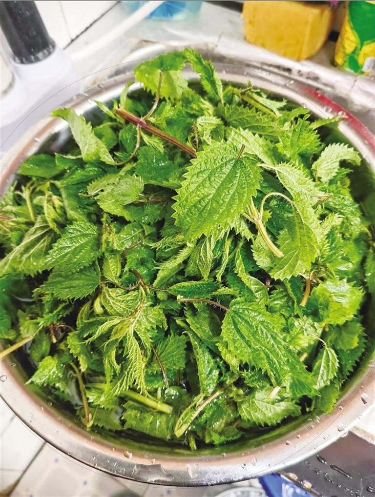 清洗干凈的蕁麻草。