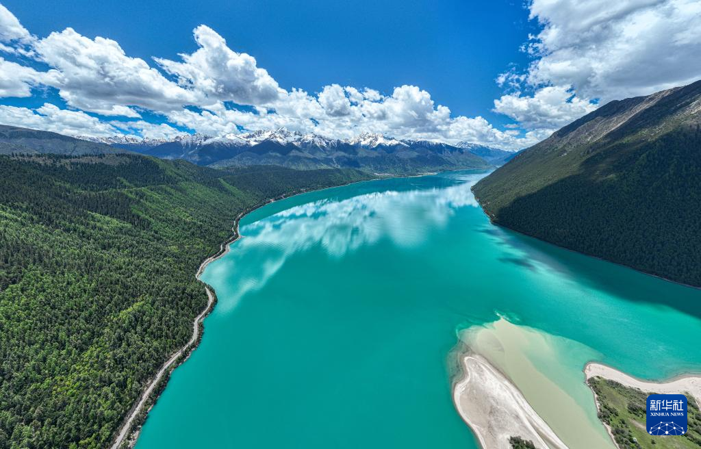 雪山環(huán)抱的巴松措(5月28日攝,無人機照片)。新華社記者 晉美多吉 攝 ??