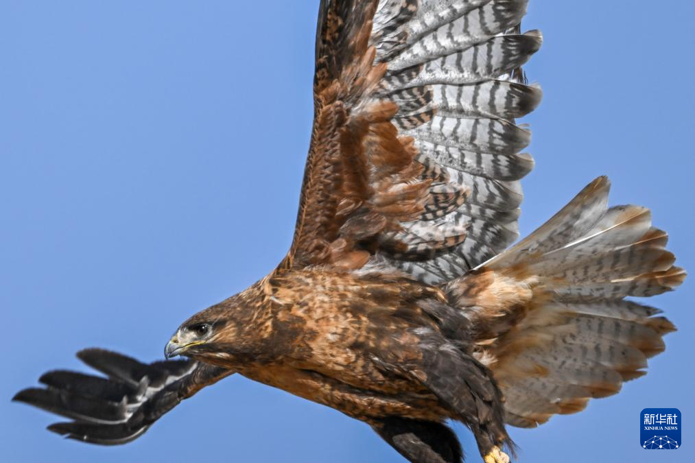 一只大鵟在羌塘草原展翅飛翔(6月8日攝)。新華社記者 劉金海 攝 ??