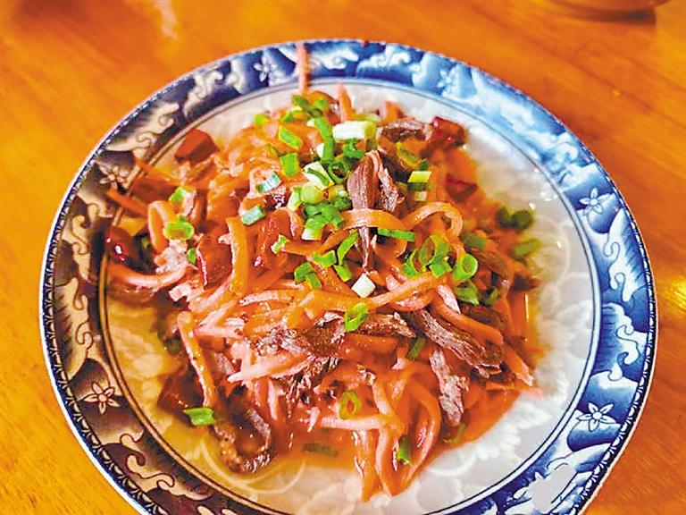 這道酸蘿卜炒牛肉也出現(xiàn)在了旺扎家的團(tuán)圓飯上,厚切的牛肉帶著恰到好處的酸味,深受一家人喜愛(ài)。“這道菜色香味俱全,大家都愛(ài)吃。”旺扎爺爺笑著說(shuō)。