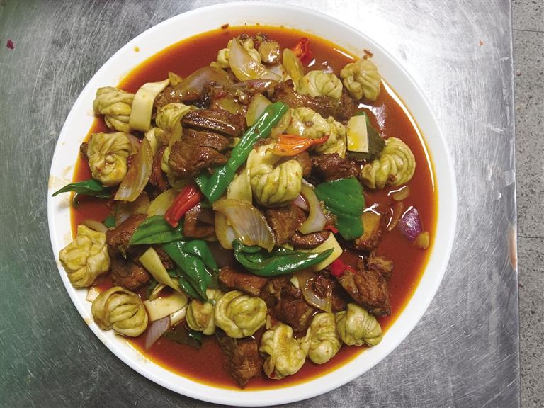 店內(nèi)生意紅火,但背后的辛苦只有王林生自己知道?!拔渫媸持v究純手工,面團(tuán)得反復(fù)揉搓,做出來(lái)的面條才筋道爽滑。剛開(kāi)始學(xué)揉面,胳膊酸得抬不起來(lái),做出來(lái)的面也不對(duì)味。”王林生說(shuō),印象深刻的是,第一次在高原煮面條,面好像怎么也煮不透。后來(lái),他才明白高原的水只燒到八十多度就開(kāi)了,煮面要用高壓鍋。他不放棄,一遍遍地調(diào)整揉面的力道和醒發(fā)的時(shí)間,反復(fù)試驗(yàn)煮面的火候,甚至不惜成本從老家運(yùn)面粉過(guò)來(lái)。終于,那一碗正宗的“涼州大寬”從鍋中撈出,澆上自家熬制的濃香四溢的牛肉臊子,潑上一勺滾燙的辣油,撒上翠綠的香菜、蒜苗。這口扎實(shí)熱乎的武威風(fēng)味,竟成了不少高原異鄉(xiāng)人舌尖上的撫慰。