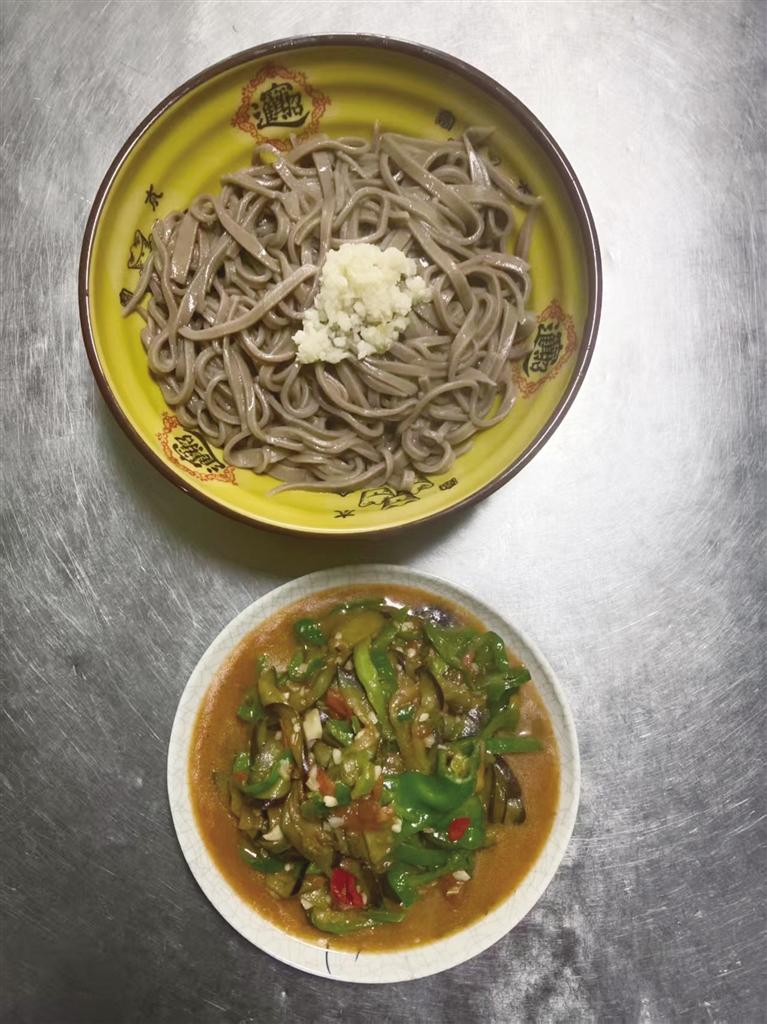 走進(jìn)麥香面莊,幾位客人熱烈地談?wù)撝ぷ骱蜕?,言語(yǔ)間滿是熱情。老板娘笑容滿面地招呼著客人。廚房?jī)?nèi),王林生則套著圍裙,燒水、下面、澆湯、加菜,動(dòng)作麻利得像練過(guò)千百遍。