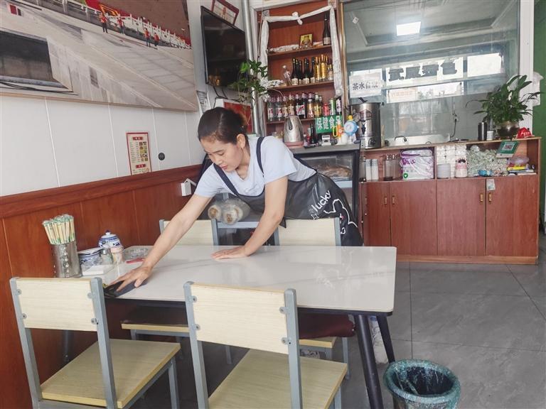 采訪中,不時(shí)有顧客光顧,王林生妻子笑臉相迎,招呼客人落座后,雙手遞上菜單,再倒上茶水。如果客人中有老人或孩子,她也會(huì)主動(dòng)詢問(wèn)是否需要放辣椒,菜品有啥忌口的??吹接浾邅?lái)采訪,老顧客都豎起大拇指,表示小店雖不大,但味道不錯(cuò)。