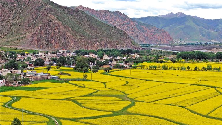盛夏時(shí)節(jié),拉薩市墨竹工卡縣的萬畝油菜花迎來盛花期,金黃色的花海與高原特有的藍(lán)天白云相映成趣,構(gòu)成一幅壯美的自然畫卷。近年來,墨竹工卡縣適度擴(kuò)大油菜種植規(guī)模、舉辦油菜花旅游推介會等,大力發(fā)展小菜籽油特色產(chǎn)業(yè),推動產(chǎn)業(yè)發(fā)展和群眾增收致富。