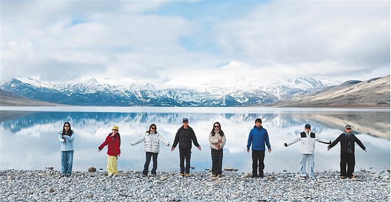 游客在崇巴雍錯景區(qū)打卡拍照。 記者 旦增嘎瓦 攝