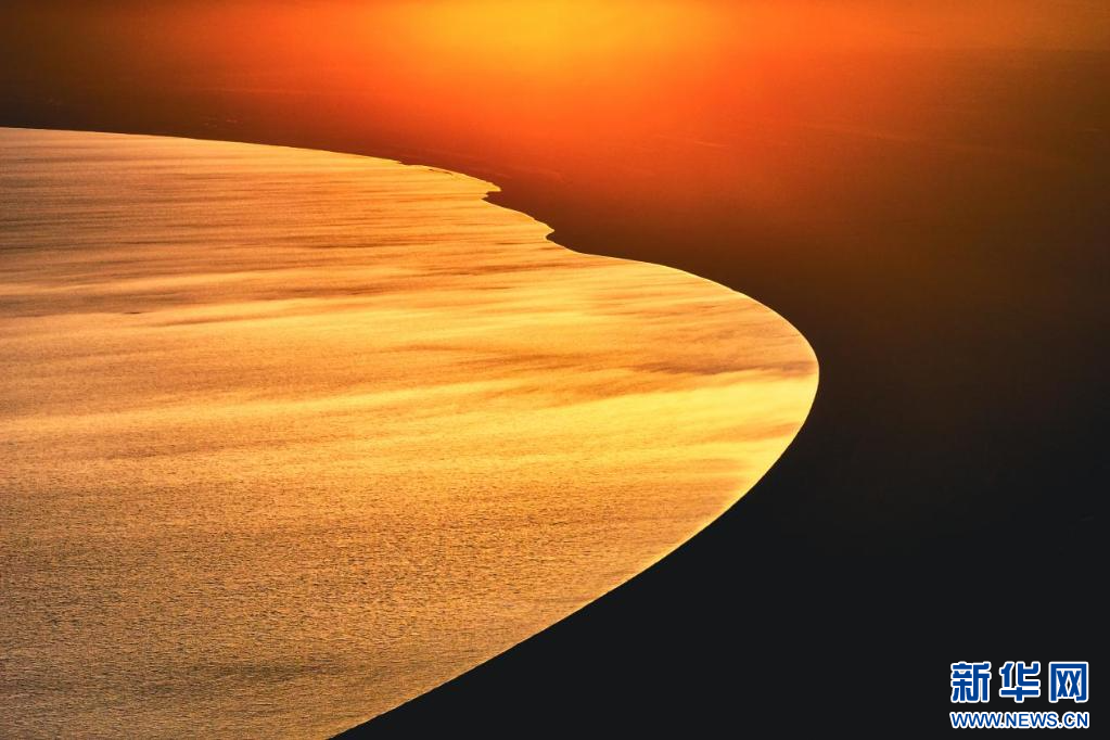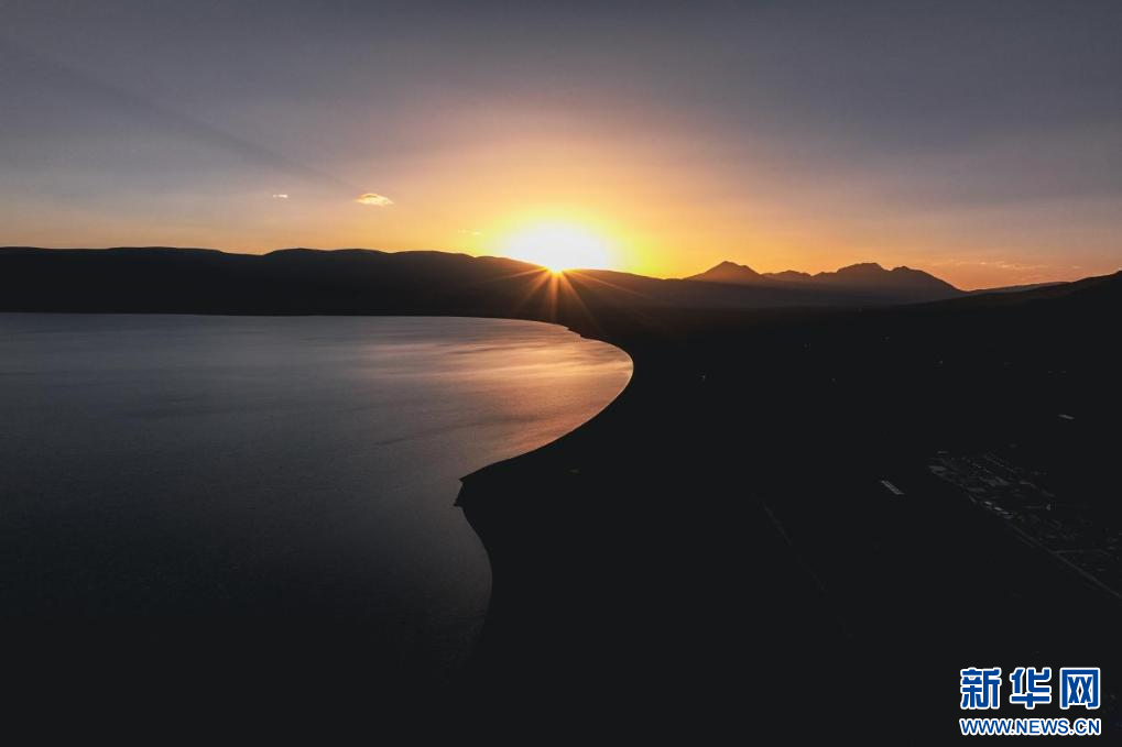 圖為夕陽(yáng)下的當(dāng)惹雍錯(cuò)( 7月5日攝,無(wú)人機(jī)照片)。新華網(wǎng)發(fā) 車(chē)宇軒 攝