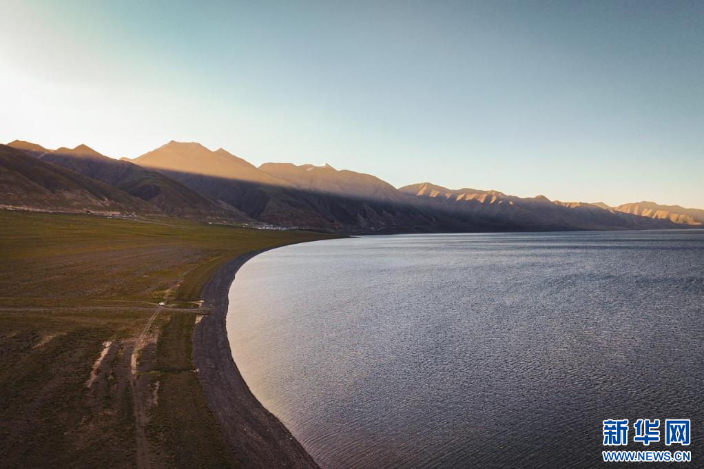 圖為當(dāng)惹雍錯(cuò)晨景(7月6日攝 ,無(wú)人機(jī)照片)。新華網(wǎng)發(fā) 車(chē)宇軒 攝
