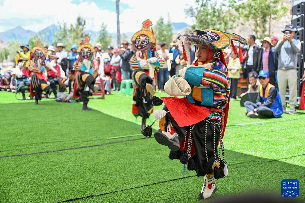 7月16日,民間藏戲表演隊在南木林縣非遺公園內(nèi)表演湘巴藏戲。新華社記者 李鑫 攝 ??