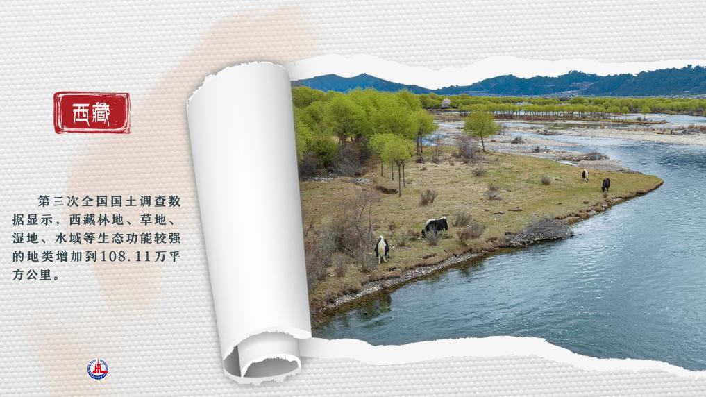 第三次全國國土調(diào)查數(shù)據(jù)顯示,西藏林地、草地、濕地、水域等生態(tài)功能較強的地類增加到108.11萬平方公里。