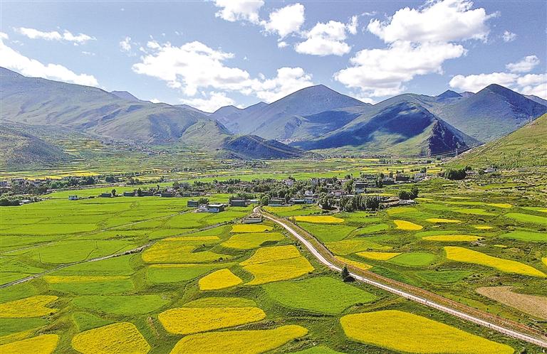 盛夏時(shí)節(jié),驅(qū)車(chē)行駛在拉薩市墨竹工卡縣的鄉(xiāng)村公路上,兩側(cè)金黃的油菜花海與黝黑的柏油路相映成趣,滿(mǎn)載青稞的農(nóng)用車(chē)與色彩鮮艷的農(nóng)村客運(yùn)班車(chē)擦肩而過(guò),勾勒出一幅流動(dòng)的豐收?qǐng)D景。這樣的景象在如今的西藏鄉(xiāng)村已成為常態(tài),一條條嶄新的公路正悄然改變著高原大地的面貌。