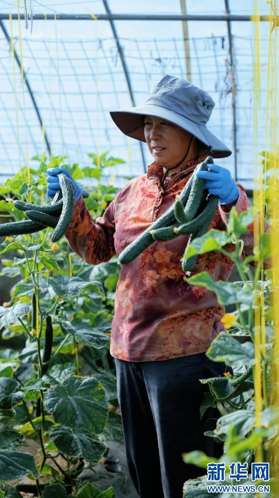 圖為工人展示采摘的黃瓜(9月26日攝)。新華網(wǎng) 柑丹鴦琦攝