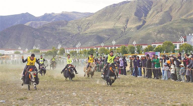 拉薩市墨竹工卡縣賽牛場(chǎng)舉辦獨(dú)具特色的牦牛競(jìng)速賽