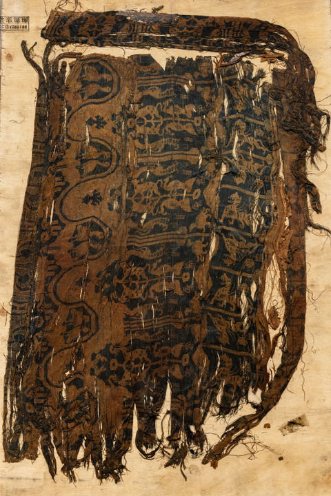 這是阿里故如甲木墓地出土的漢代“王侯鳥(niǎo)獸紋錦”,上有“宜王侯”字樣。(受訪者供圖)