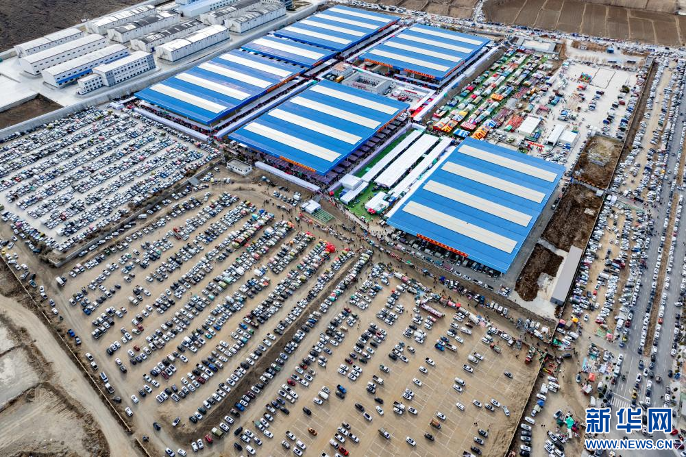 12月1日,西藏自治區(qū)山南市第45屆雅礱物資交流會(huì)現(xiàn)場(chǎng)(無人機(jī)照片)。新華網(wǎng) 旦增努布 攝