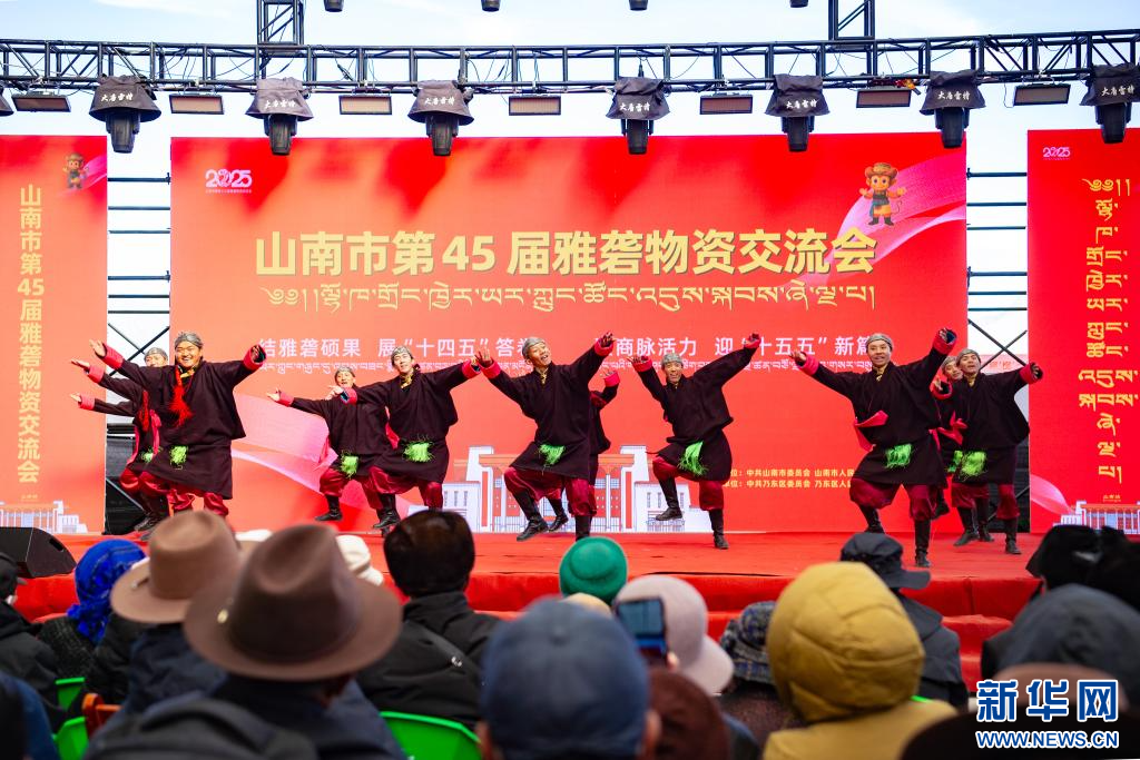 12月1日,西藏自治區(qū)山南市第45屆雅礱物資交流會(huì)開幕式現(xiàn)場(chǎng)文藝演出。新華網(wǎng) 旦增努布 攝
