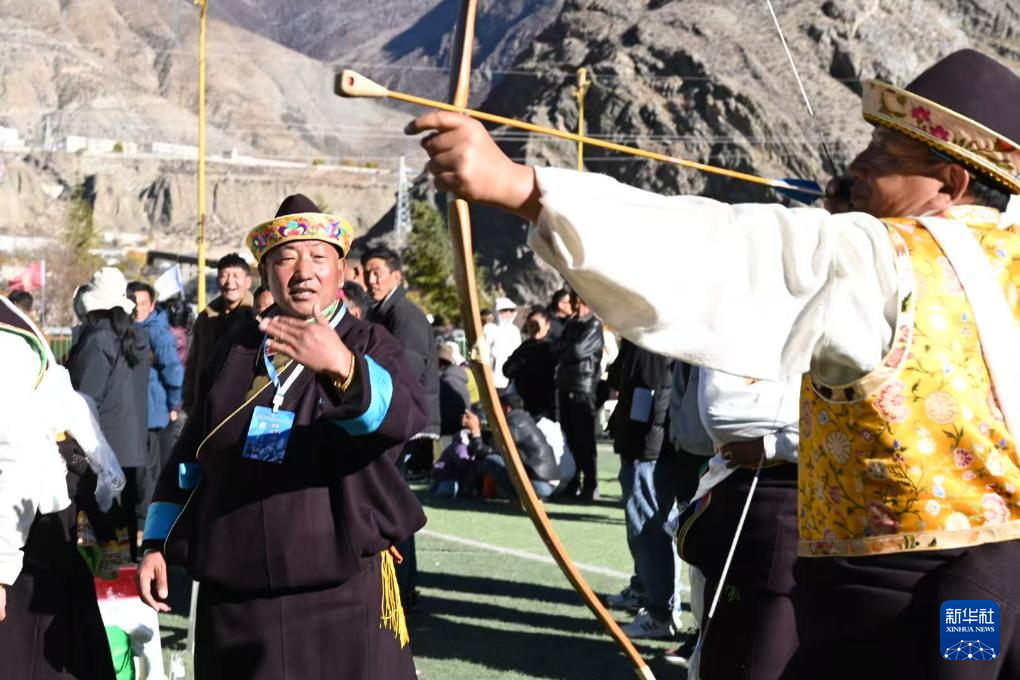 西藏自治區(qū)林芝響箭比賽已連續(xù)舉辦十屆,是西藏規(guī)模最大、影響最廣泛的響箭比賽之一。比賽前,村民們身著盛裝、攜酒備肴,早早就來到賽場等待。比賽過程中,人們唱起旋律激昂、提振士氣的箭歌,跳起“工布箭舞”,射中箭靶后,射手們還會與隊友擊掌相慶,呼喊“擦秀”(藏語“慶?!敝猓┮允竟膭睿F(xiàn)場氛圍好不熱鬧。