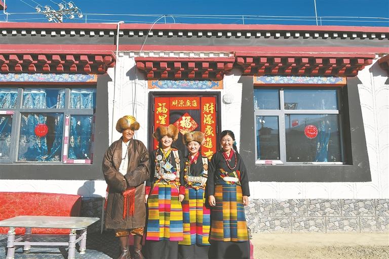 拉孜縣錫欽鄉(xiāng)錫欽村村民一家人在新居前拍下全家福。西藏日報記者 旦增蘭澤 攝