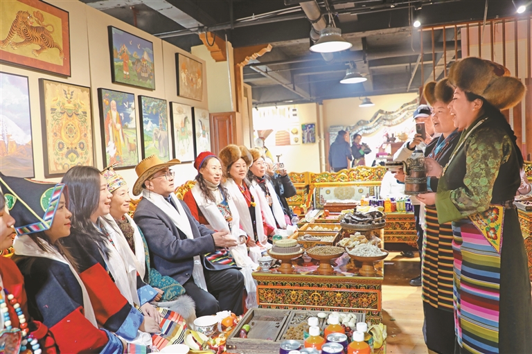 游客近距離體驗(yàn)藏族習(xí)俗。