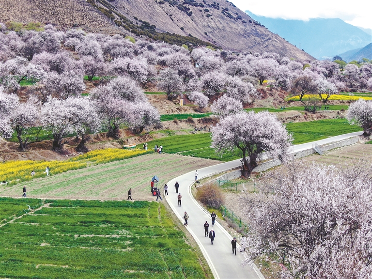 漫山桃花常開,生態(tài)之美、百姓之富、產(chǎn)業(yè)之興,在春風(fēng)里、在繁花中,徐徐鋪展成雪域江南獨(dú)有的錦繡長(zhǎng)卷。
