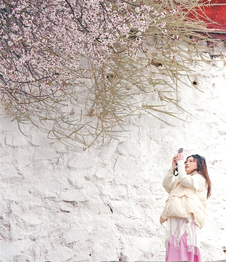 市民在用手機拍攝拉薩春日美好風光。記者 索朗旺久 攝