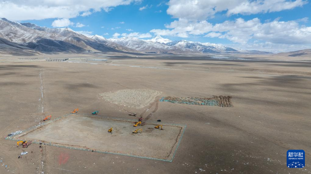 這是中廣核西藏當雄烏瑪塘50兆瓦光熱電站破土動工現(xiàn)場(4月6日攝)。新華社記者 丁增尼達 攝
