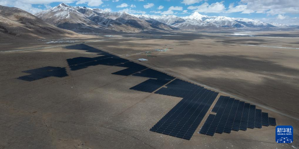這是中廣核當雄烏瑪塘“光熱+光伏”一體化項目(4月6日攝,無人機照片)。新華社記者 丁增尼達 攝