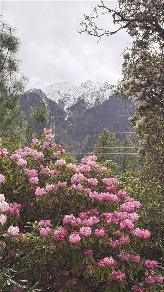 近日,記者跟隨踏青人流,從拉薩市區(qū)自駕前往林芝市波密縣八蓋鄉(xiāng)。進入八蓋鄉(xiāng)境內(nèi),眼前的景致便如畫卷般層層鋪展,而最讓人心動的,是那片盛開在雪山腳下的花海。春日的八蓋鄉(xiāng),漫山遍野的高山杜鵑肆意綻放,粉、紅、紫、白交織成絢爛花海,尋春的腳步踏過花叢,沾著細碎的花瓣,人也仿佛浮在花的海洋里,連呼吸都帶著清甜的香氣,目之所及皆是絕美的春日畫卷。沿著當?shù)卮蛟斓亩霹N花徒步環(huán)線前行,偶爾還能在花海間遇上矮矮的草屋,非常適合拍照打卡。
