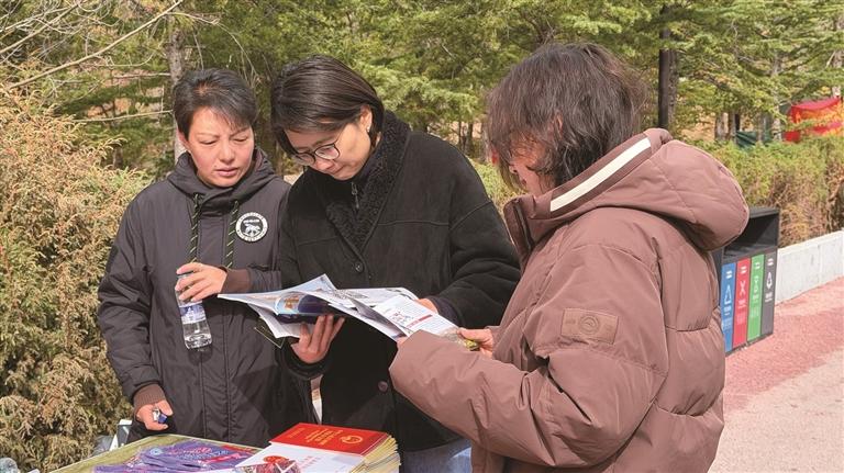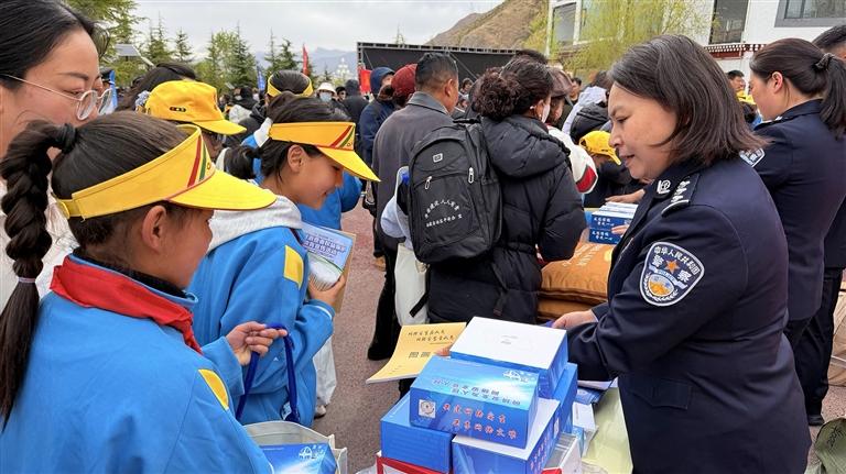 沿著公園步道,拉薩市人民防線辦公室 、公安局、司法局、生態(tài)環(huán)境局等多個部門,依次設(shè)立了宣傳展位。工作人員穿梭在人群中,耐心地向過往群眾發(fā)放宣傳手冊,細(xì)致講解網(wǎng)絡(luò)安全、防火防災(zāi)、生態(tài)保護(hù)、防范詐騙等貼近日常的安全知識,路過的市民紛紛駐足聆聽、主動咨詢,時(shí)不時(shí)拿起宣傳資料翻閱。