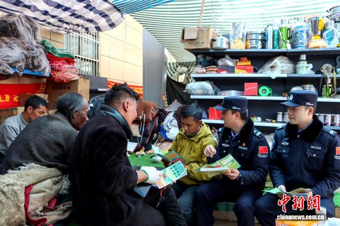 圖為里孜邊檢站民警走進(jìn)商鋪介紹國(guó)家安全教育相關(guān)法律知識(shí)。劉海東 攝