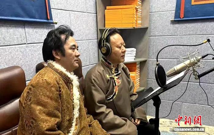 1月12日,《格薩爾》史詩說唱藝人在錄制音頻數(shù)據(jù)。(青海省格薩爾史詩保護(hù)研究中心 供圖)