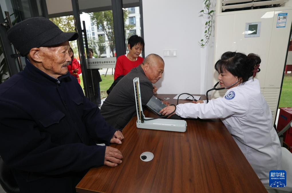 10月21日,醫(yī)務(wù)人員在給老人測血壓。新華社記者 徐昱 攝