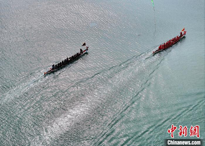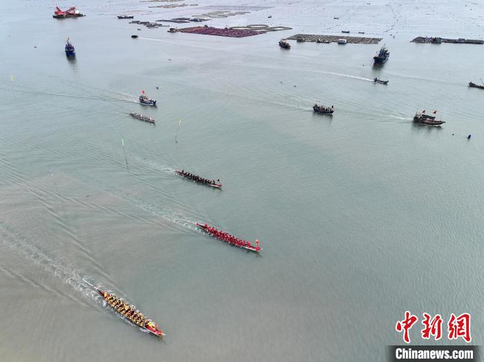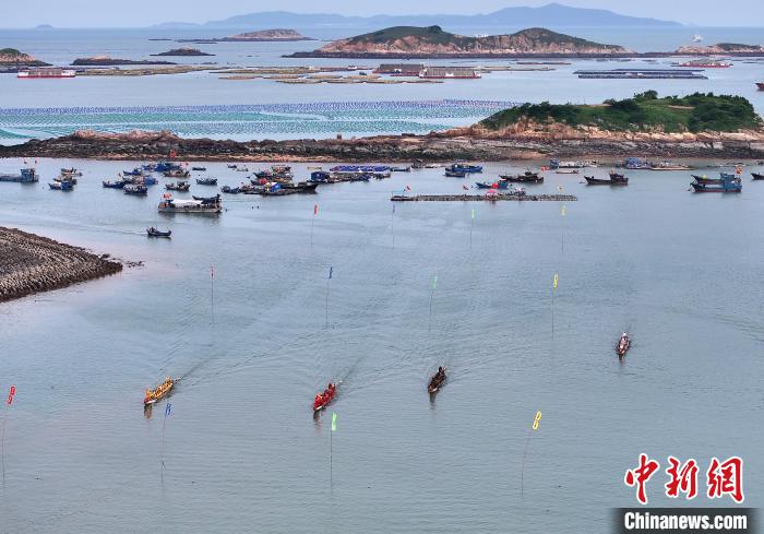 5月27日,福建省連江縣定海村舉行海上龍舟賽活動(dòng),迎接即將到來的端午節(jié)。(無人機(jī)照片)中新社記者 張斌 攝