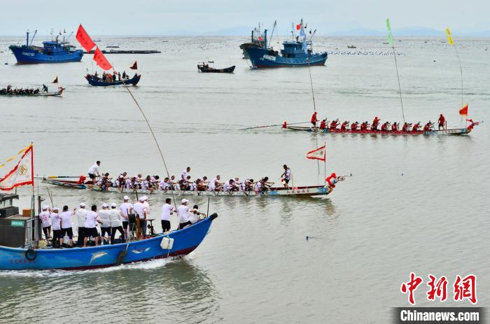 5月27日,福建省連江縣定海村舉行海上龍舟賽活動(dòng),迎接即將到來的端午節(jié)。據(jù)了解,定海海上賽龍舟始于明朝,如今每年端午期間,村民都會(huì)自發(fā)組織龍舟競(jìng)渡。中新社記者 張斌 攝
