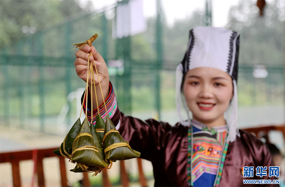 5月28日,市民在貴州省黔東南苗族侗族自治州榕江縣車民街道陽(yáng)光社區(qū)展示她們包的粽子。新華網(wǎng)發(fā)(李長(zhǎng)華 攝)