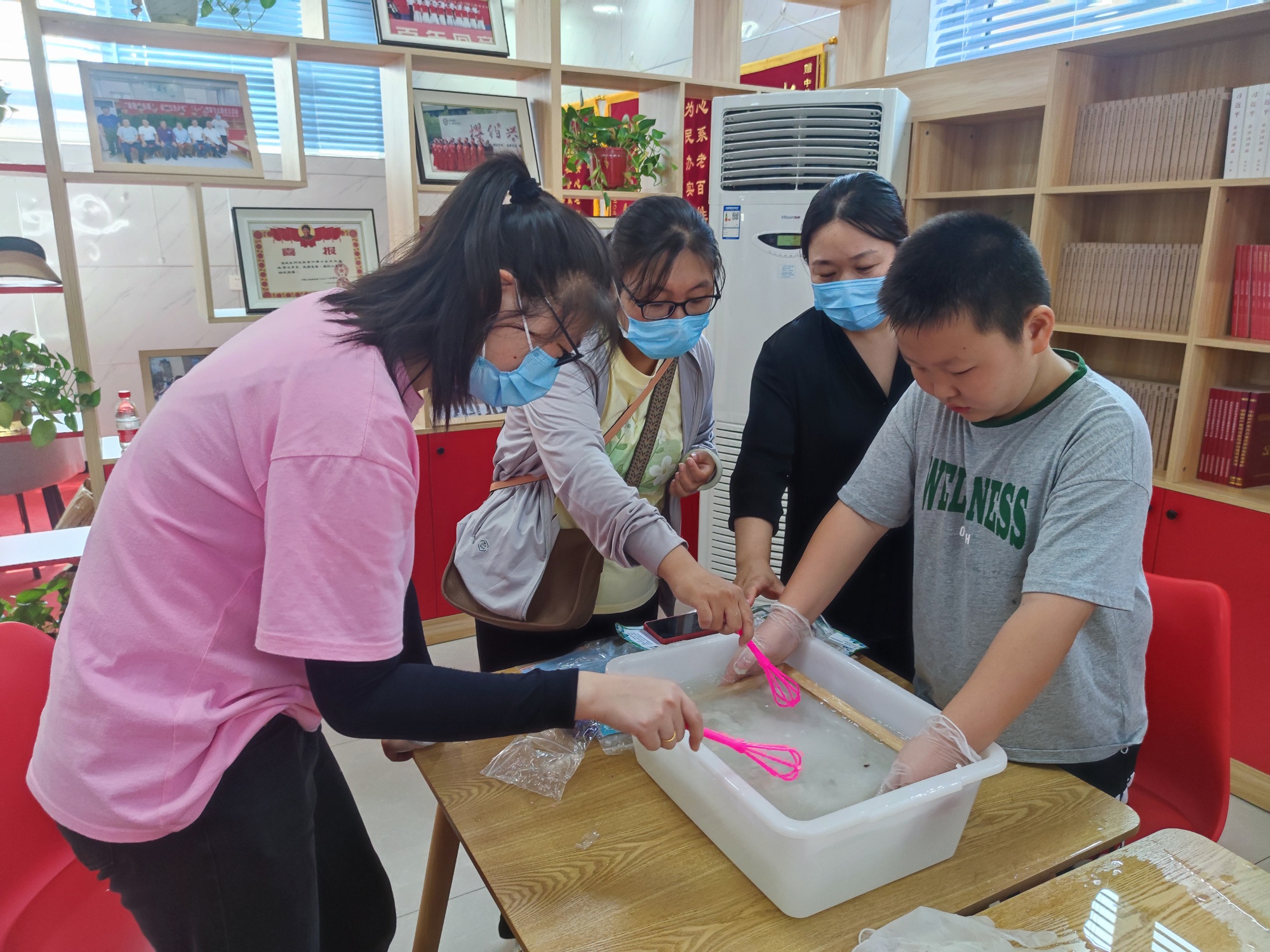 社區(qū)居民體驗(yàn)漆包技藝的調(diào)漆過程(王梓涵 攝)