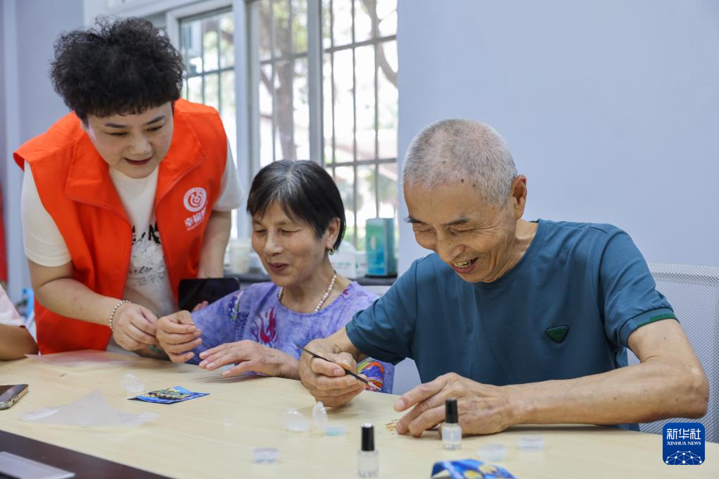 8月6日,志愿者指導(dǎo)龍泉街道潛莊社區(qū)居民制作七彩螺鈿蝴蝶胸針。